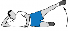 • Lie on your side with your injured leg on top and the bottom leg bent to support.
