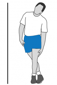 • Lean your hip toward the wall, and feel a stretch at the outside of your hip. Hold the stretch for 30 seconds.